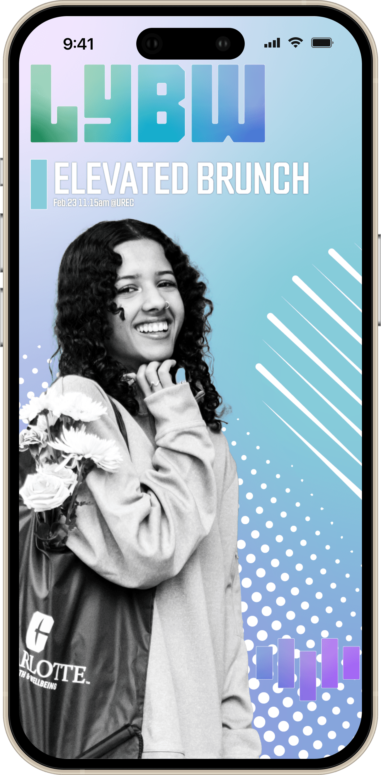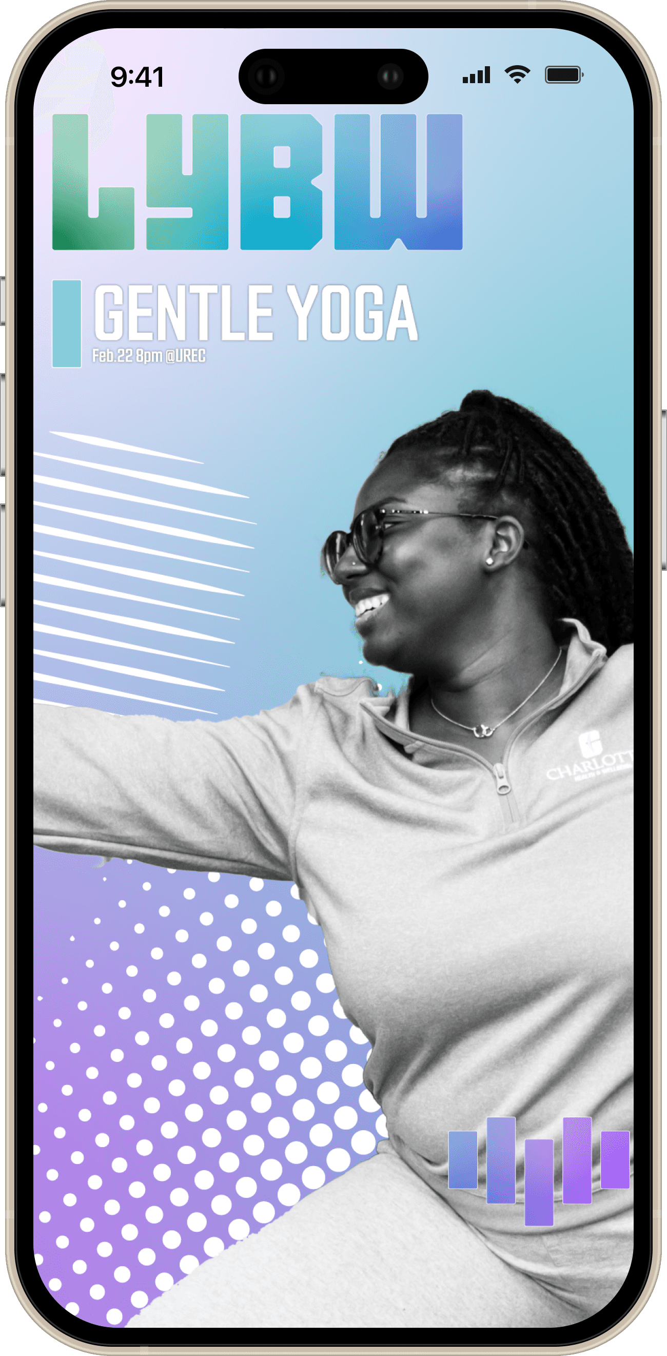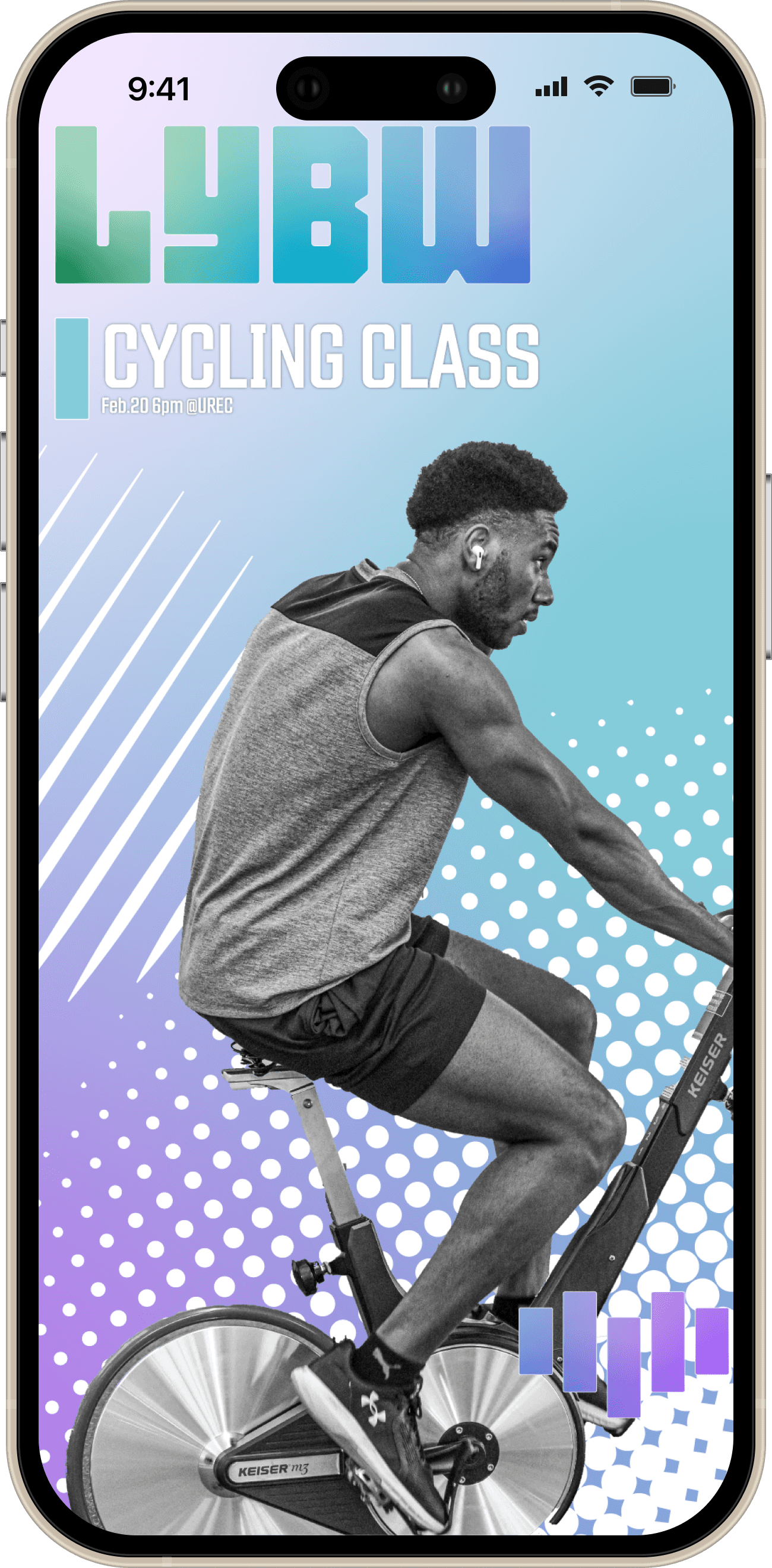 Building on the playful, childlike energy of Healthy Campus Week, this campaign shifts toward geometry, structured forms, and a prominent sense of light. The focus moves from iconography to imagery, highlighting the people of the campus. The visual language conveys lightness, smoothness, and modernity, with sleek lines juxtaposed against human figures. A soft gradient background accentuates white text, while simple shapes direct attention exclusively to the models.